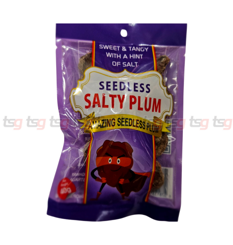 Amazing Brown Seedless Salty Plum 40g is a delightful snack for those who enjoy the unique combination of sweet, tangy, and salty flavors. Made from fully ripe plums with the seeds removed, this snack offers a chewy texture and a well-balanced flavor profile, enhanced with salt, sugar, and liquorice.