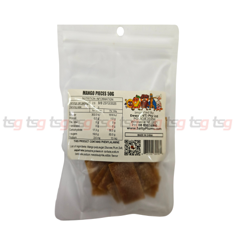 Mango Pieces 50g is a flavorful fruit-based snack made from blended mango pulp combined with plum, sugar, salt, and safe food additives. Each piece has a chewy texture with a unique sweet, salty, and mildly tangy flavor that fruit snack lovers will find irresistible — especially those who enjoy classic Chinese-style treats.