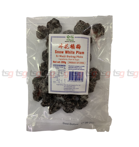 Experience a unique twist on a classic treat with Sakura Snow White Plum (Xí Muội Đường Phèn). These premium plums are expertly preserved and coated in a delicate layer of crystallized rock sugar, giving them their signature "snow white" appearance and a refined, sweet finish that perfectly balances the natural tartness of the fruit.